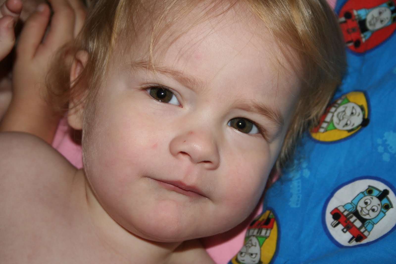 Woke up one morning, and got James out of bed. Told him to go wake up Clara. Couldn't find him after a while. Decided to check on him. He had crawled up into bed and decided to lay down with Clara.